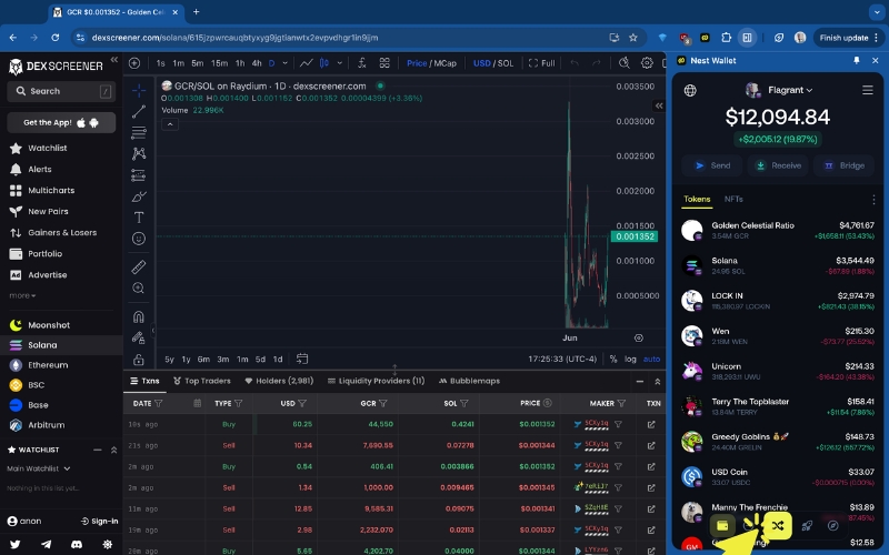 Nest Wallet has native integration with various charting platforms including DexScreener, Birdeye and more!